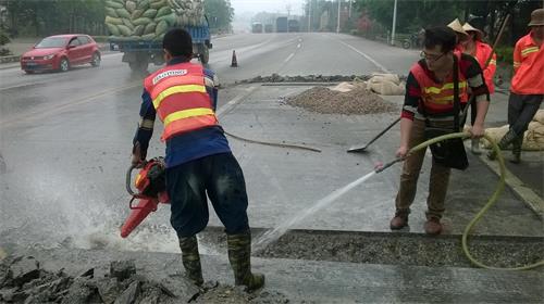 用風(fēng)鎬鑿除劃線范圍內(nèi)的混凝土,鑿除深度一般為板厚的二分之一約12cm(不得低于10cm),鑿除時(shí)應(yīng)從劃線內(nèi)區(qū)域向外鑿除,避免出現(xiàn)啃邊現(xiàn)象。如果面板已出現(xiàn)比較嚴(yán)重的錯(cuò)臺(tái)、脫空,建議先打孔壓漿后再進(jìn)行修補(bǔ)。