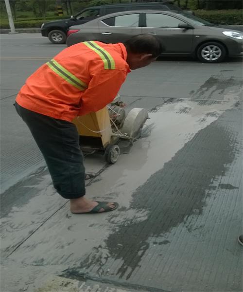 使用切割機(jī)沿劃出的平行線進(jìn)行切割,切割深度達(dá)到8-10cm。注意及時(shí)使用清水沖洗地面,防止看不到線而切偏。