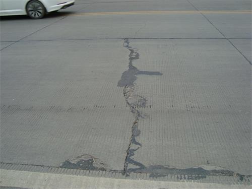 3、此種修補(bǔ)方法限于混凝土面板基礎(chǔ)較穩(wěn)固時(shí)使用。如果面板已出現(xiàn)比較嚴(yán)重的錯(cuò)臺(tái)、脫空,建議先打孔壓漿后再行條帶修補(bǔ)。